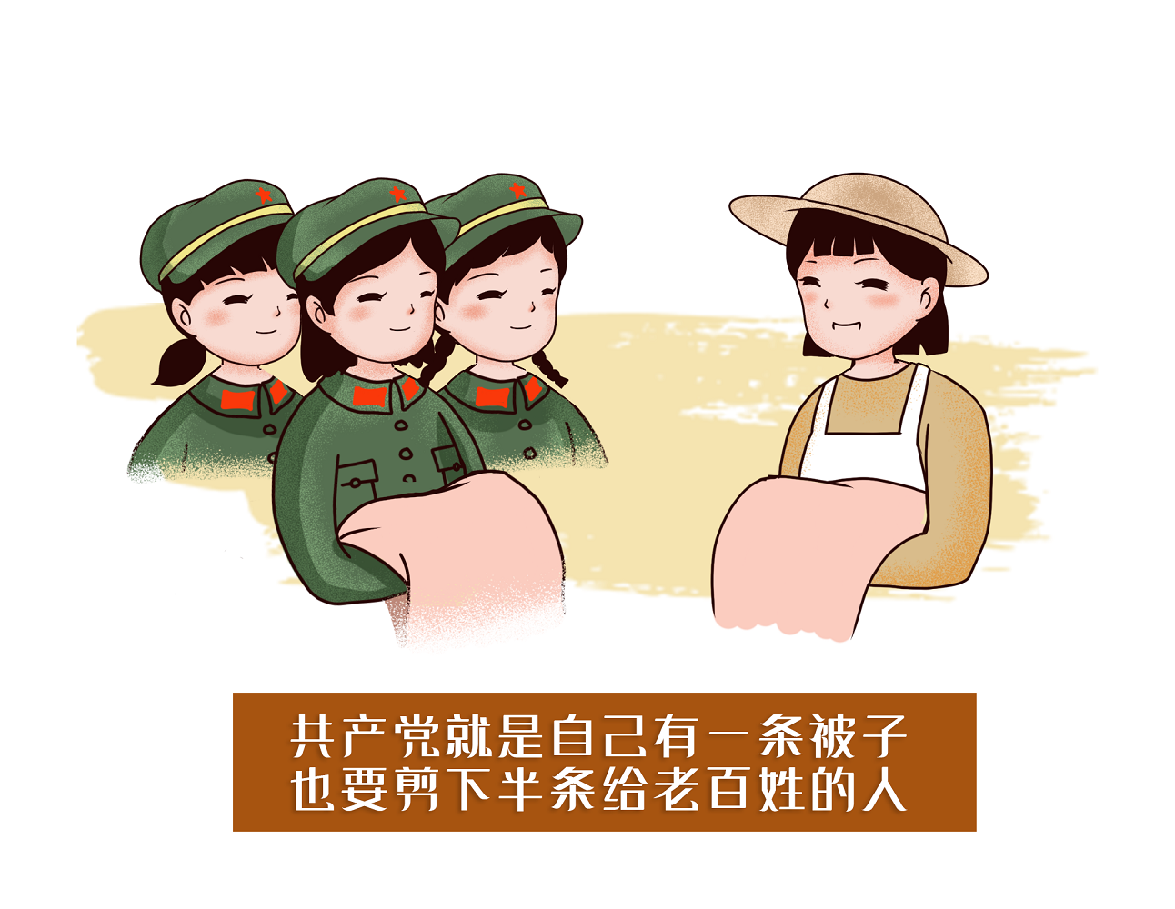 “什么是共产党?共产党就是自己有一条被子,也要剪下半条给老百姓的人。”2016年10月,在纪念红军长征胜利80周年大会上,习近平总书记深情回忆了“半条被子”的故事。