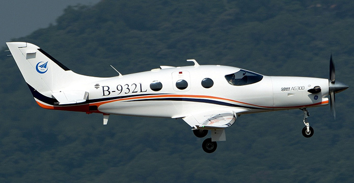 领世AG300飞机是中航通飞华南飞机工业公司按照CCAR-23部和FAR-23部研发的一型全碳纤维复合材料的5座单发涡桨轻型公务机。